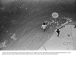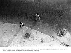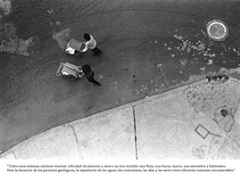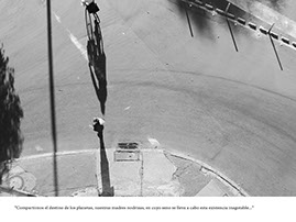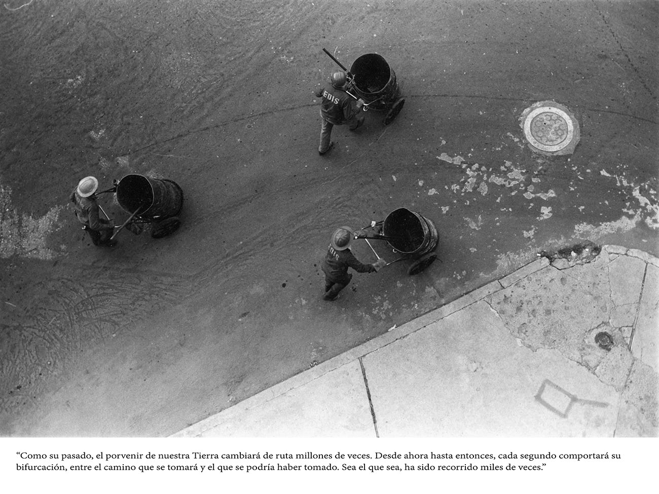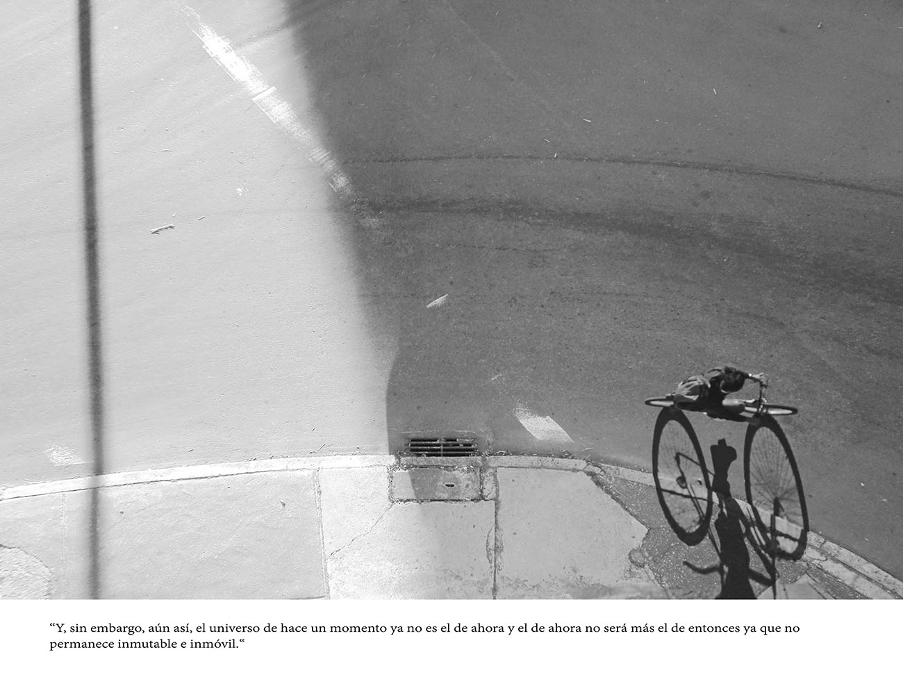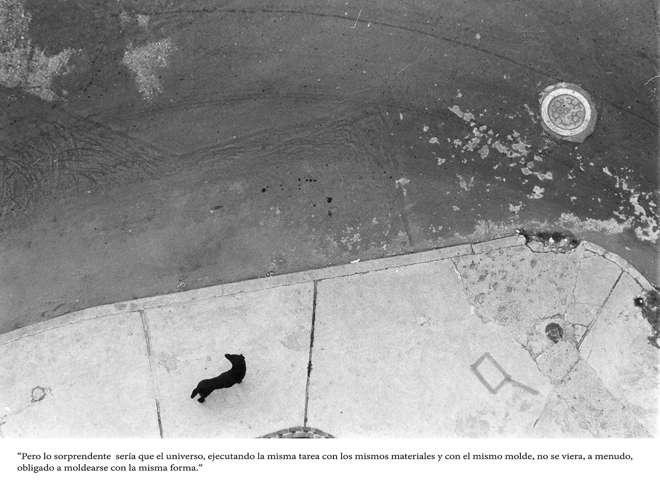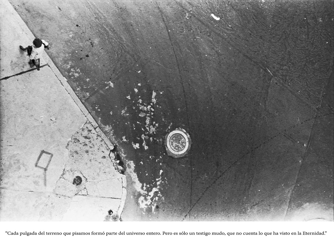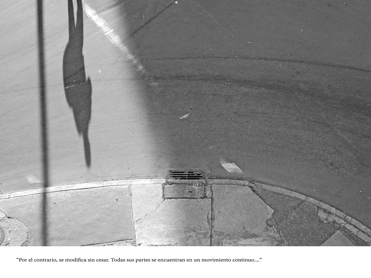 Muchos años después leí el libro La eternidad a través de los astros, una hipótesis astronómica de Louis Auguste Blanqui. El libro fue escrito por este controvertido autor mientras estaba en prisión y fue publicado en 1872. Propone una teoría poética del eterno retorno a partir de una infinita multiplicidad de tiempos y espacios en mundos posibles que contienen dobles de todos los seres por lo que concluye que todo ser humano a partir de esta conjetura, es un ser eterno en cada uno de los segundos de su vida a partir de las repeticiones y variaciones de su existencia en todo el universo. Es inevitable pensar en Blanqui creando un modelo del universo basado en la repetición como una compensación mental a su prolongado encierro en la prisión y un cierto consuelo de redención y eternidad de su propia existencia en la misma. Tal vez por esto el texto me conmovió. Decidí entonces, acompañar las fotografías con fragmentos del texto de Blanqui. Me gustó la idea de contrastar las imágenes de la cotidianidad de las personas del barrio que caminan en el andén o atraviesan la calle con la dimensión y escala cósmica del texto de Blanqui. Me parece que la imagen y el texto se potencian mutuamente. De hecho Blanqui en varios párrafos compara los acontecimientos de las vidas individuales de los seres humanos con la eterna repetición y variación de los eventos que, en su especulación astronómica, definen el devenir de las estrellas y los planetas.