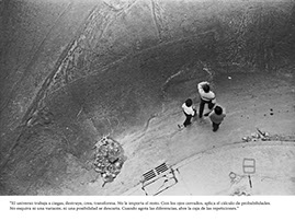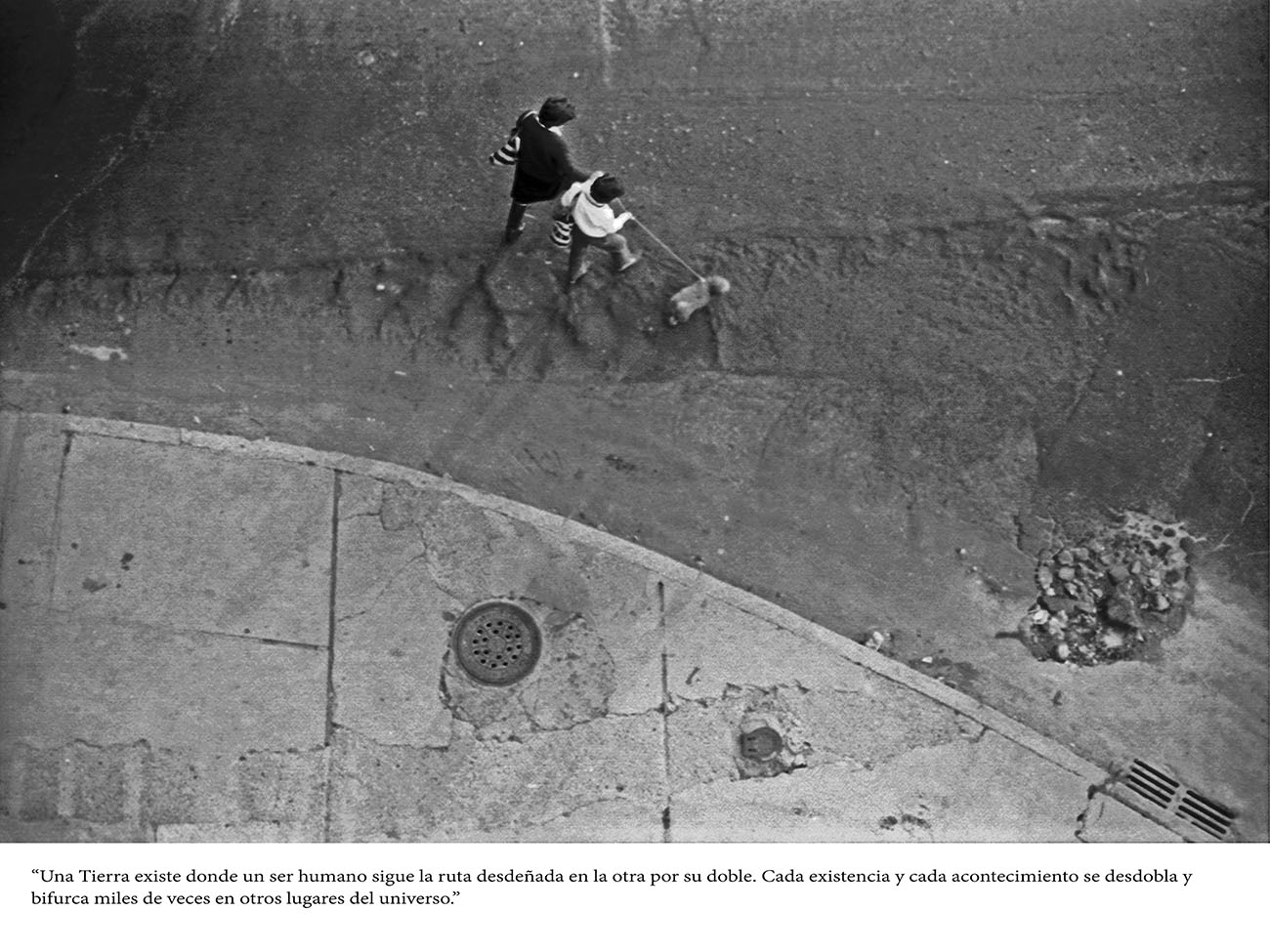 "Tomé el libro de Blanqui, me lo puse debajo del brazo y salí a la calle. Me senté en un banco del parque Pereyra. Una vez más leí este párrafo: "Habrá infinitos mundos idénticos, infinitos mundos levemente diversos, infinitos mundos diferentes. Lo que ahora escribo en un calabozo de la Fortaleza de Taureau, lo he escrito y lo escribiré durante la eternidad, en una mesa, en un papel, en un calabozo eternamente parecidos. En infinitos mundos mi situación será la misma, pero tal vez haya variaciones en la causa de mi encierro o en la elocuencia o el tono de mis páginas."