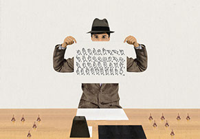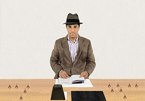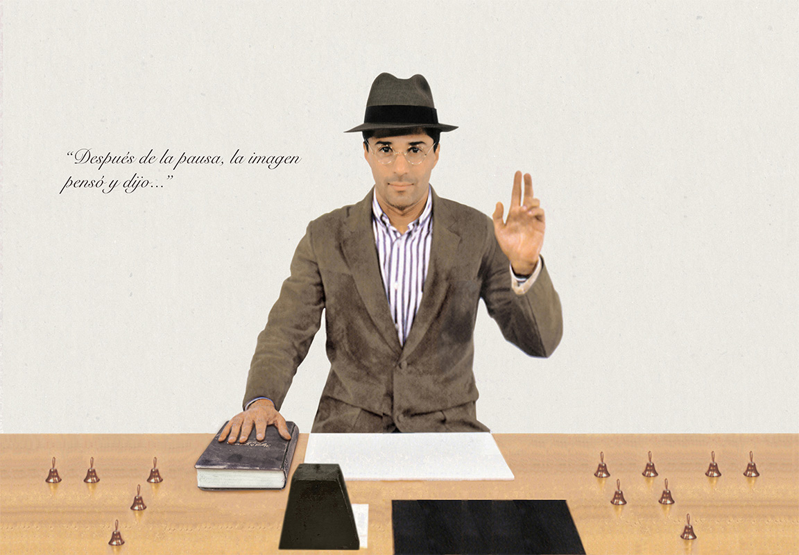En esta obra reutilizo algunas imágenes de una obra previa de la década de los noventa que en esta ocasión amplié y trabajé en un conjunto de variaciones distintas al original. El núcleo del asunto gira en este caso en torno a la pregunta: