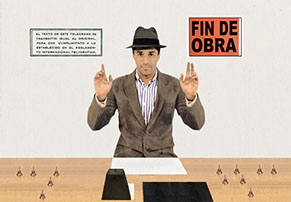 En ciertos momentos en la relación entre contenido e imagen uno llega a creer que la obra comunica algo. En realidad nunca es así. Todos lo saben, no es nada nuevo decir esto. Pero deseaba hacer una obra para jugar en torno a este asunto. El arte no comunica nada. Su sentido último elude la significación. En cierta forma siempre es difuso, ambiguo, periférico, ineficiente, incomunicable. En ello radica su fuerza y también la incomodidad de su ejercicio diario. Gasto improductivo lo denominaba Georges Bataille. Lo simbólico es polivalente y solo hace mediaciones y pone en circulación el sentido, siendo al mismo tiempo varias cosas. Un código cerrado por el contrario funciona con signos de los que se supone una equivalencia. En Mensajero sin mensaje utilizo la apariencia del código dejando al lado su coherencia. Es una suerte de experimento visual sobre el significado y el vacío inevitable sobre el que se fundamenta la significación. Sobre la pretensión de decir algo habitada de un no decir nada como su envés. Es el vacío el que porta el sentido momentáneamente. Sin embargo aquellos elementos existentes que ocupan de manera provisional la circulación del sentido crean la ilusión momentánea de signficados fijos. Pero al final la búsqueda de cada significado siempre se encuentra con una cadena interminable donde se podrá encontrar otro y otro significado tras el significado sin jamás llegar a un último núcleo del sentido. Sobretodo porque no hay un significado último, ni un núcleo final del sentido. Significar es una acción, un proceso temporal que por momentos dice y al siguiente desdice y colapsa transformándose. Gilles Deleuze habla del significado como un ocupante sin lugar y el significante como un lugar sin ocupante. En medio de ello solo hay circulación de cargas (+ -) que no se detienen.