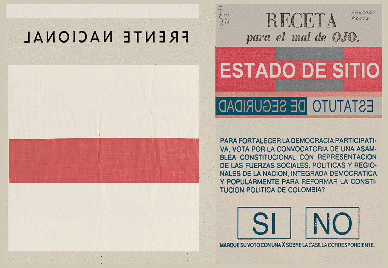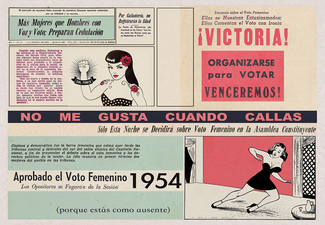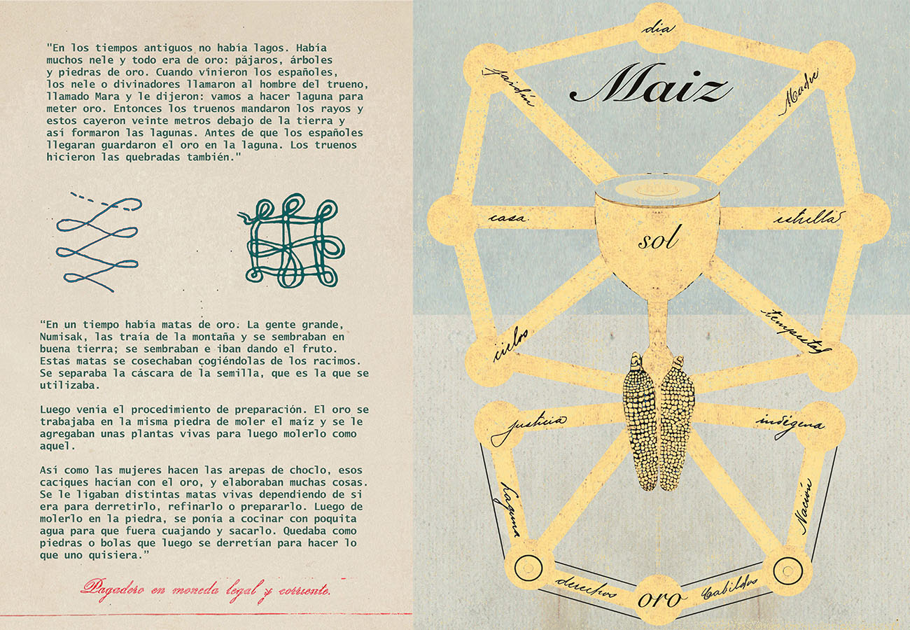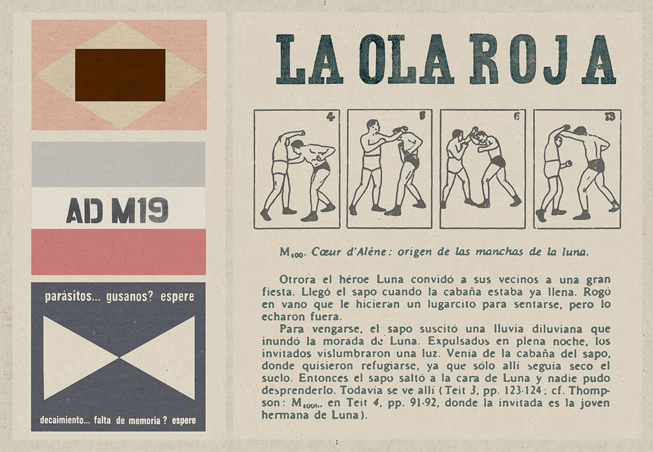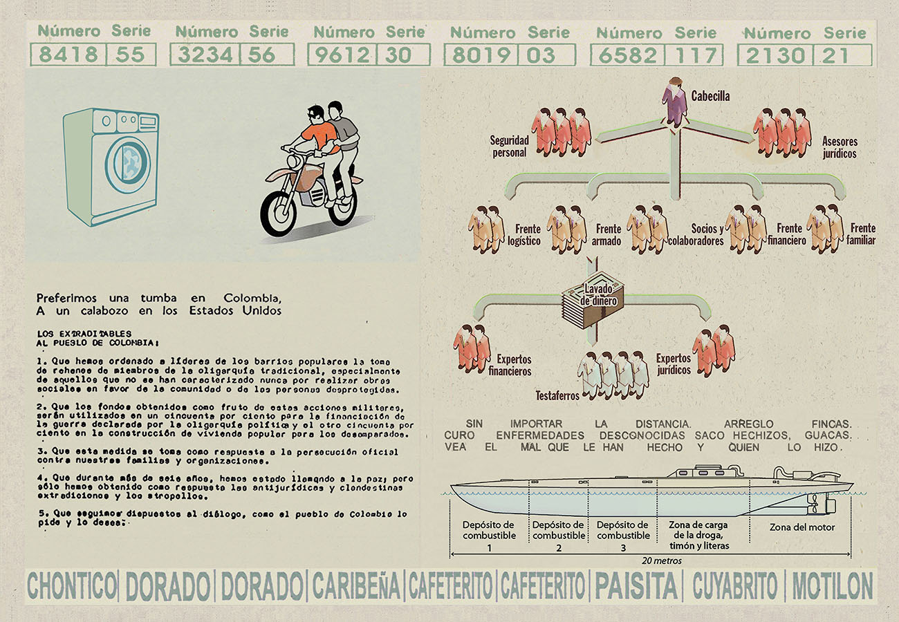 Esta serie pone en contiguidad estratos de información proveniente de distintas fuentes y tiempos. La operación es simple y muy conocida. El desplazamiento y el choque por contiguidad de lo que proviene de distintos contextos buscando juegos de sentido. En este caso, fragmentos de frases, titulares de prensa, nombres de periódicos colombianos de distintas épocas, documentos históricos, pasquines y panfletos, volantes callejeros, mitos indígenas americanos e imágenes propias interactúan en estos nuevos contextos.