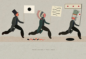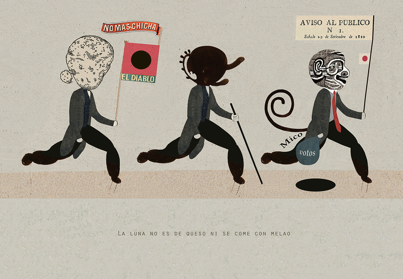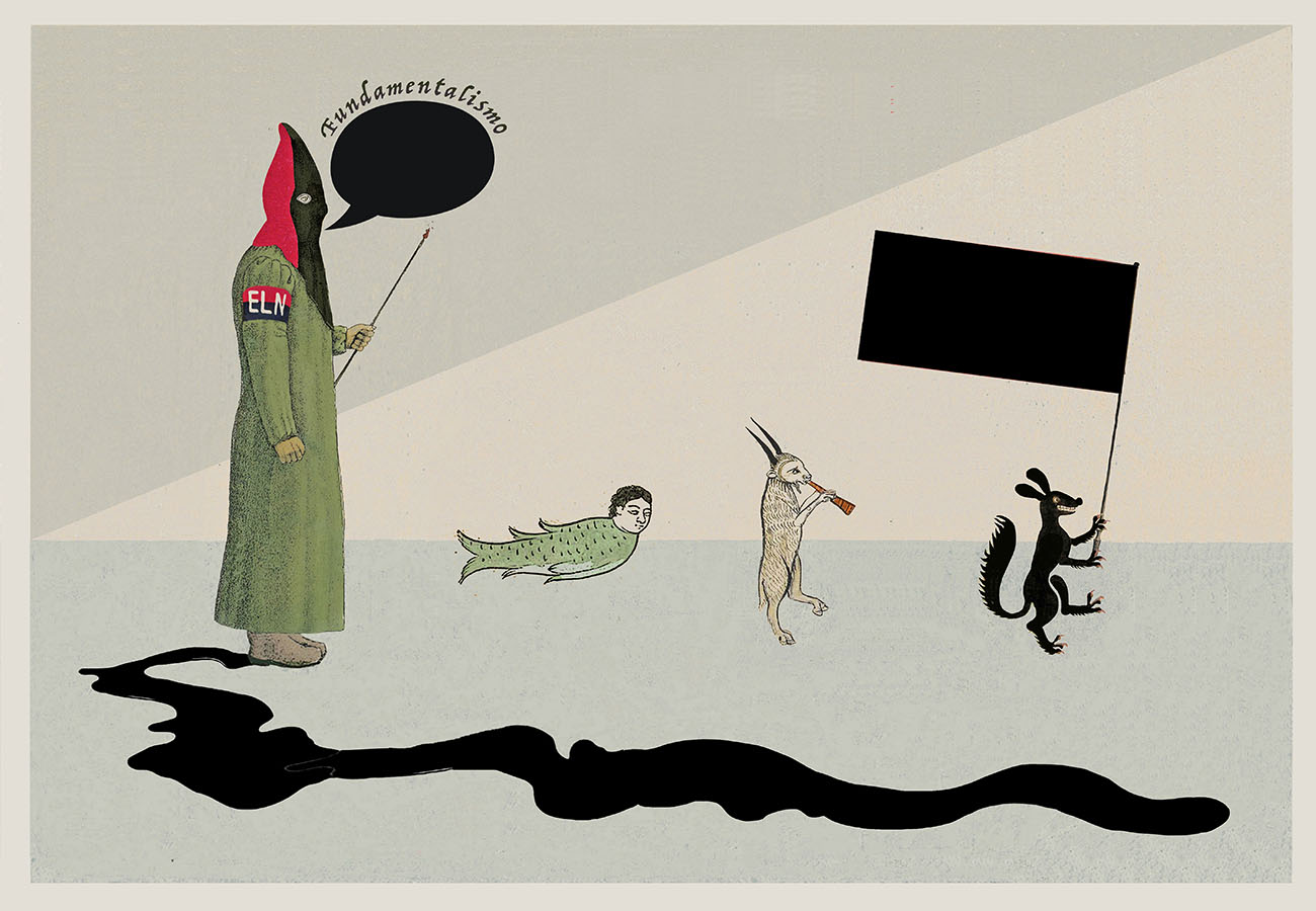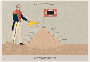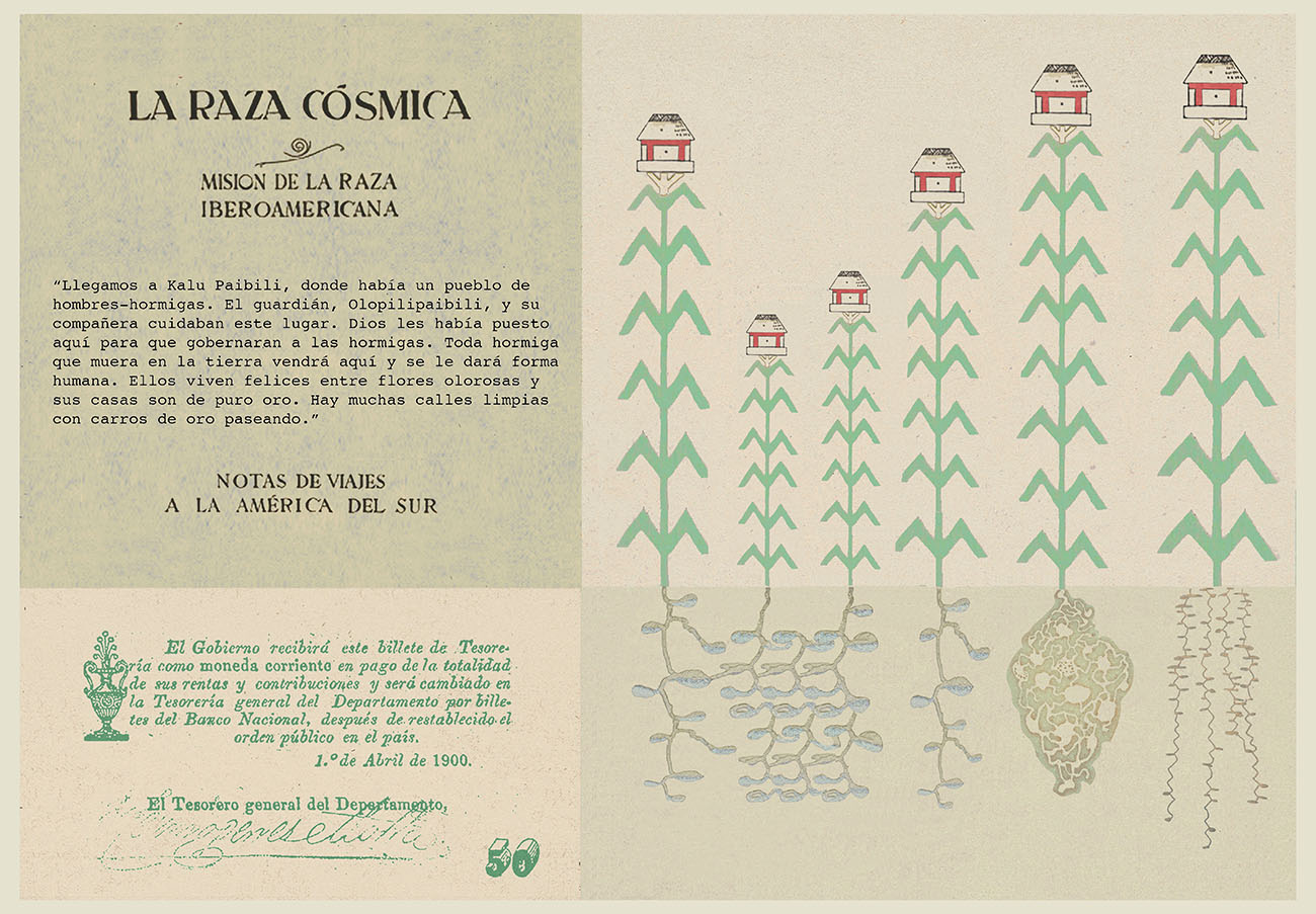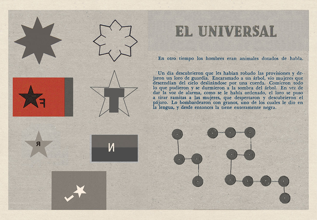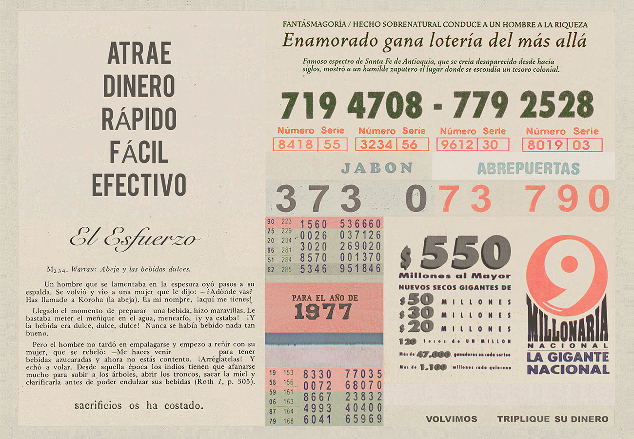 Esta serie pone en contiguidad estratos de información proveniente de distintas fuentes y tiempos. La operación es simple y muy conocida. El desplazamiento y el choque por contiguidad de lo que proviene de distintos contextos buscando juegos de sentido. En este caso, fragmentos de frases, titulares de prensa, nombres de periódicos colombianos de distintas épocas, documentos históricos, pasquines y panfletos, volantes callejeros, mitos indígenas americanos e imágenes propias interactúan en estos nuevos contextos.